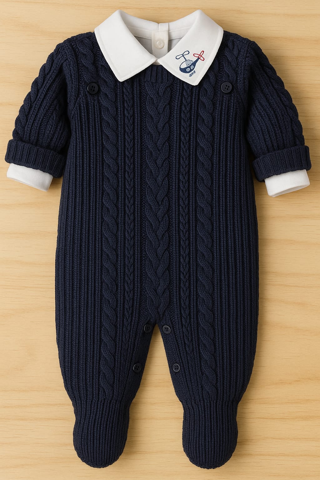 Conjunto Guará, composto pelo nosso body 100% pima e macacão tricô. A combinação garante o maior conforto para este Natal.