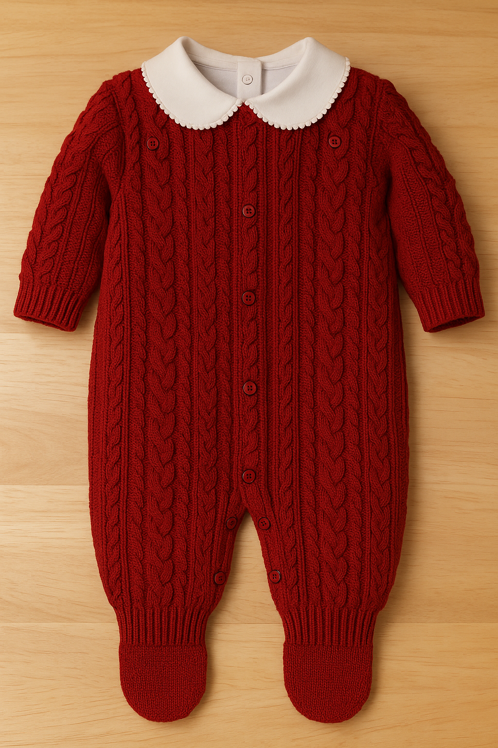 Conjunto Guará, composto pelo nosso body 100% pima e macacão tricô. A combinação garante o maior conforto para este Natal.