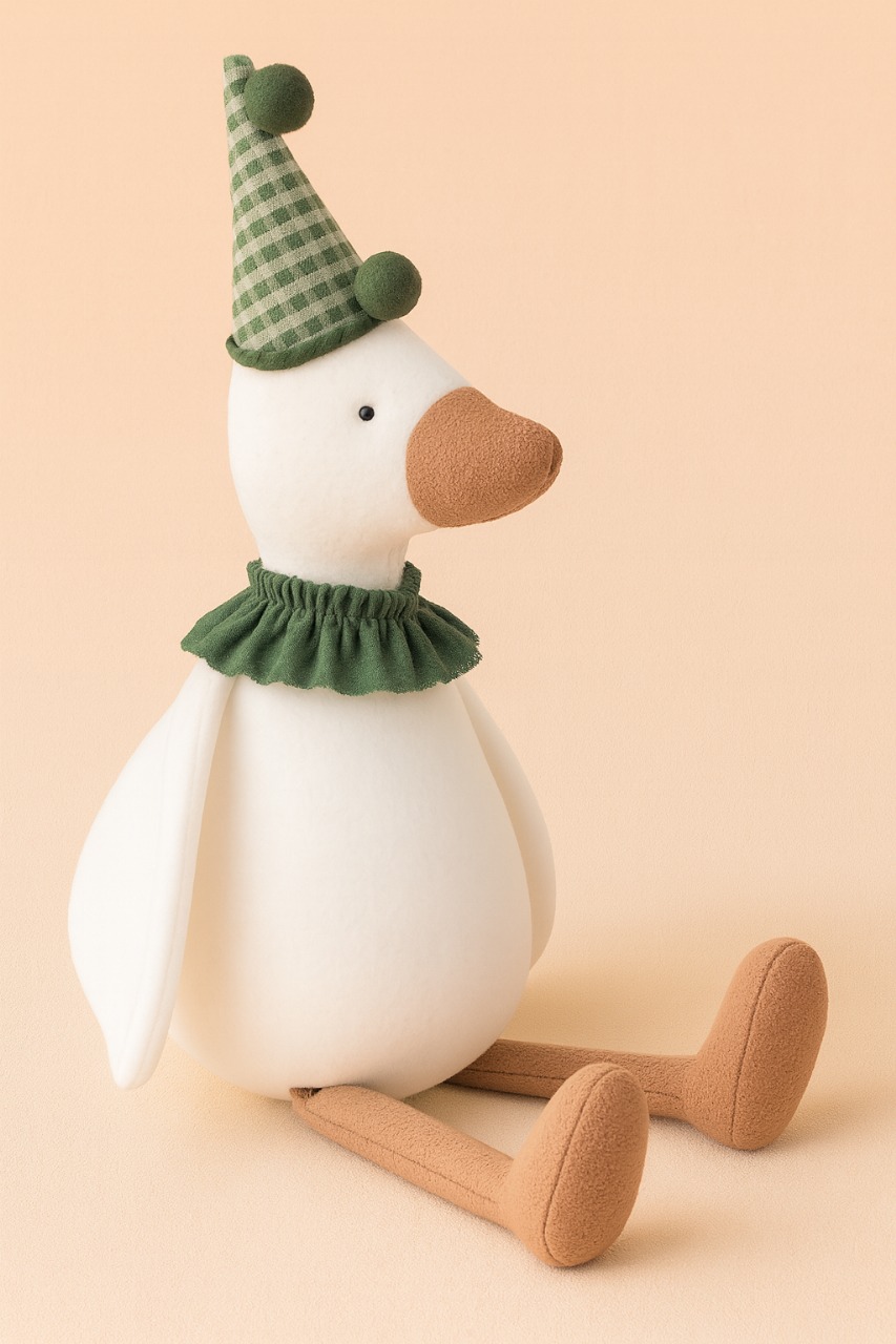 Ganso de pelúcia Guará com chapéu combinando.