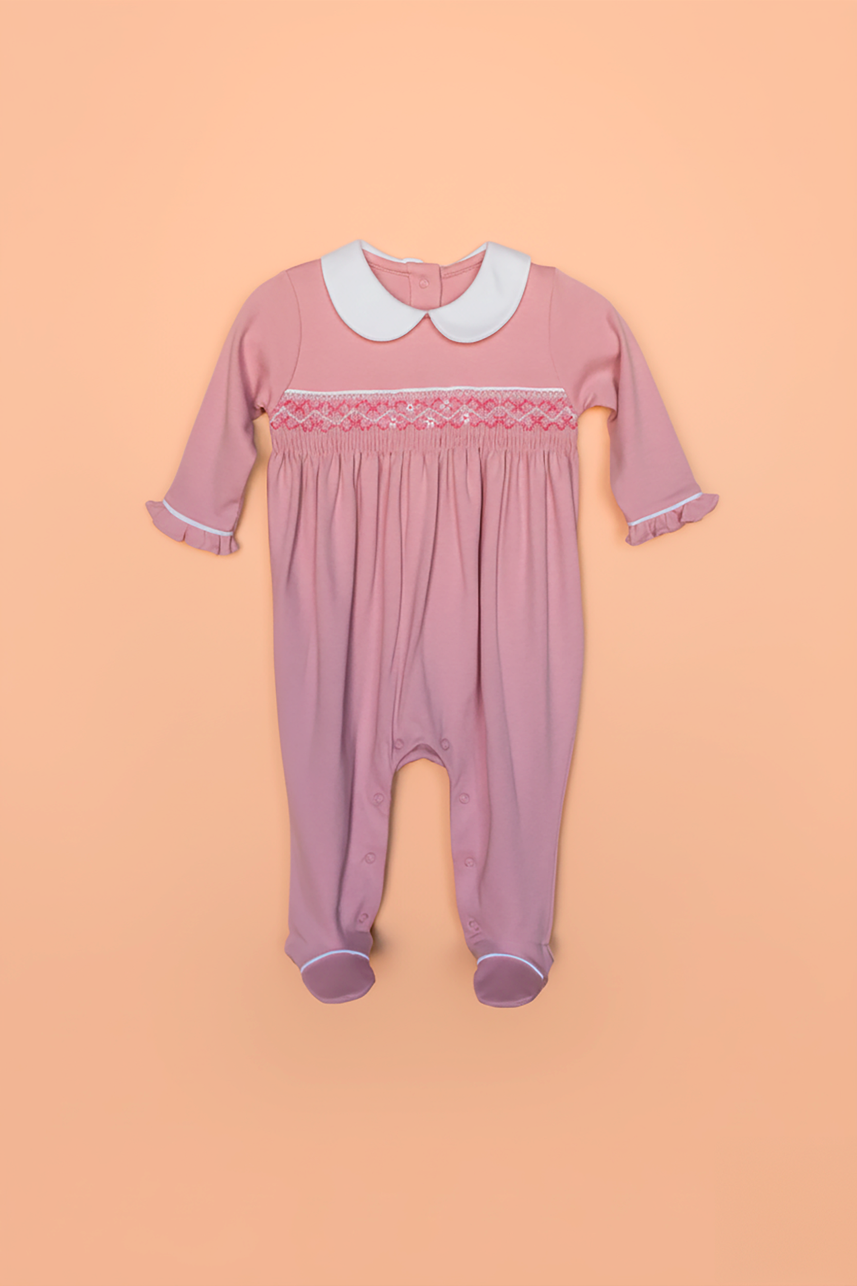 Nosso macacão com ponto smock é bordado manualmente, trazendo charme e cuidado em cada detalhe.