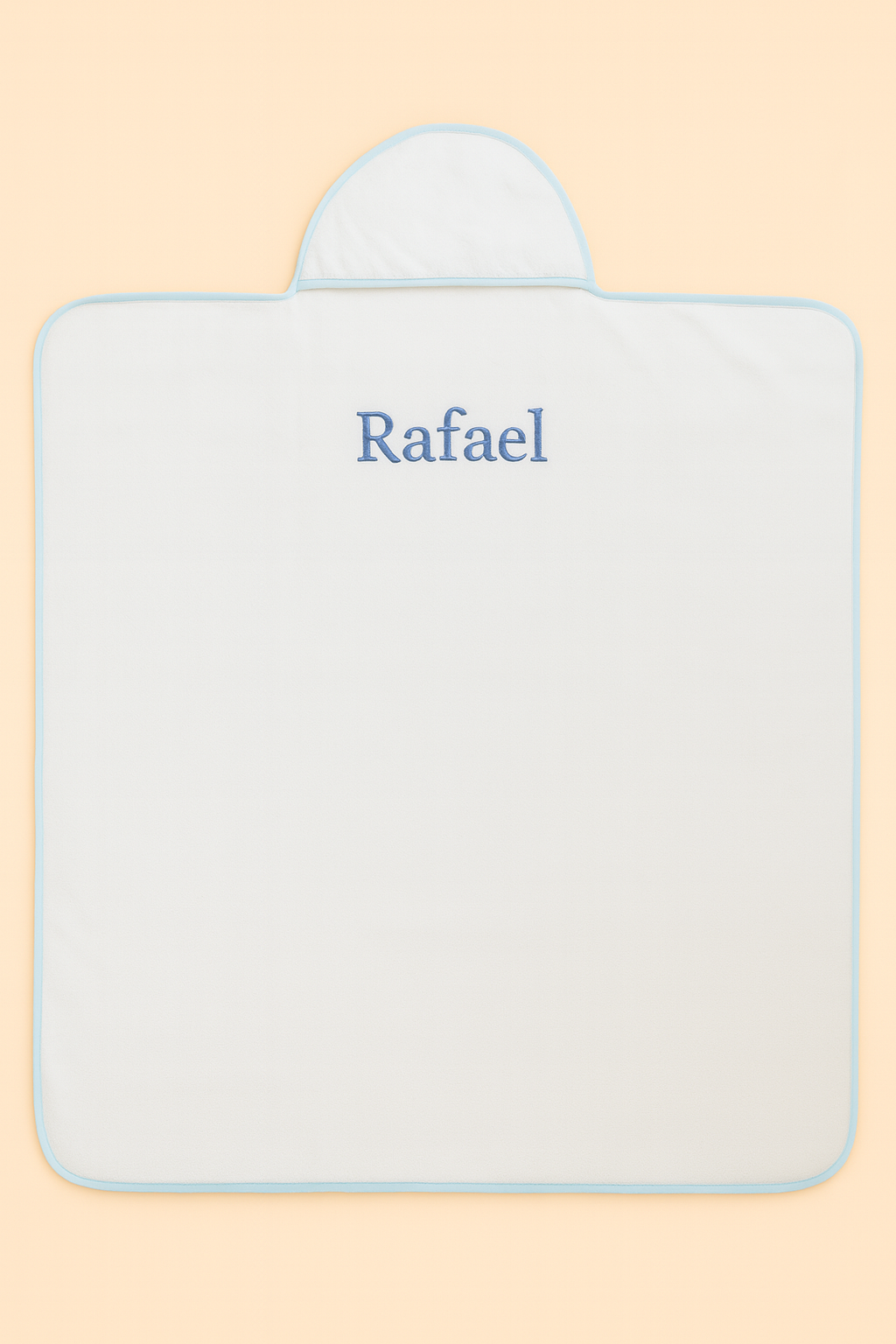 Toalha com capuz Guará, felpuda e macia, com bordado personalizado.
